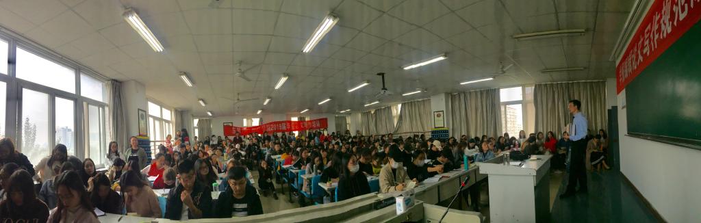 詹歆睿老师结合个人经历,围绕学术论文的选题、摘要、文稿、关键词、参考文献等要点展开讲解。为提高效果,讲座引用大量的论文范例引导学生认识毕业论文写作的严谨性与重要性,深入浅出的指导学生开展论文选题和规范论文写作要点。杨建斌对2019届本科毕业论文撰写过程中具体时间节点、过程管理、选题要求等进行了强调和说明。