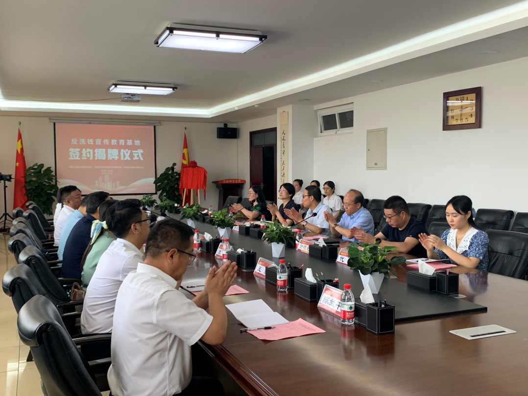 袁梁与郭文峰、寸亚文签订反洗钱宣传教育基地合作协议