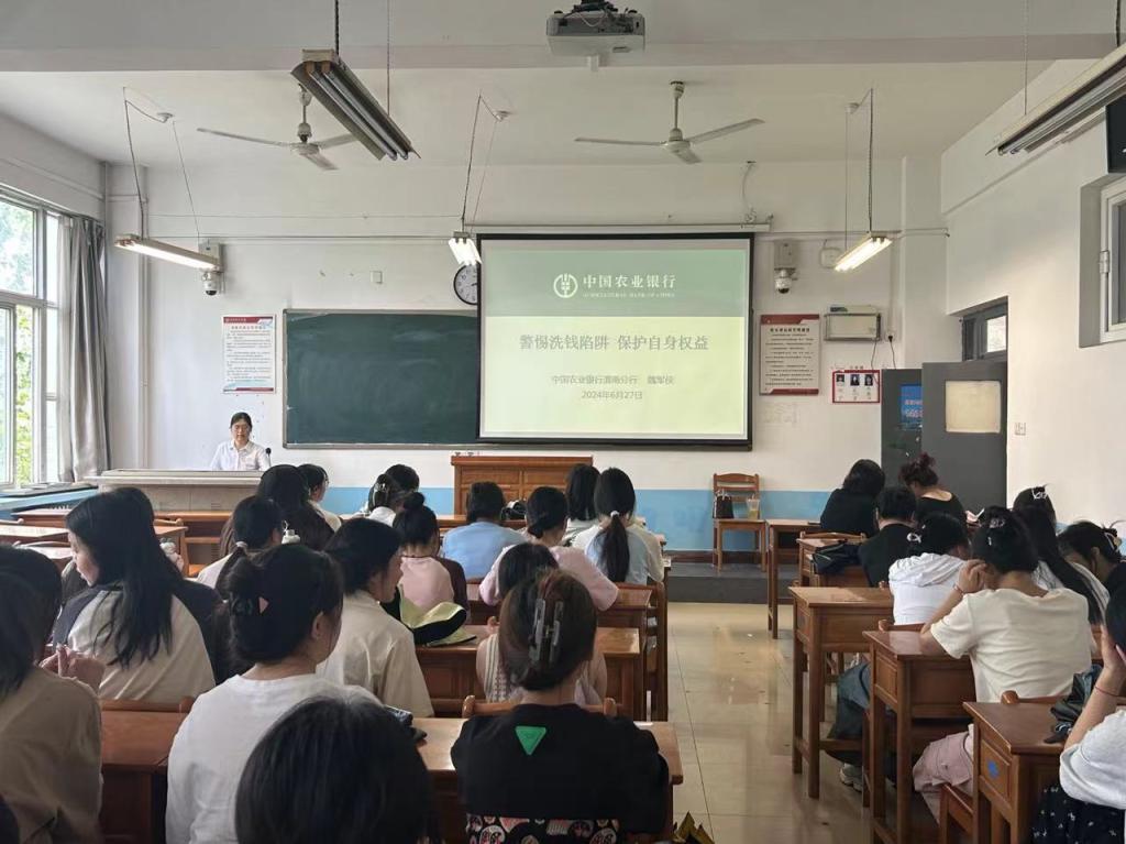 揭牌仪式后,中国人行渭南分行工作人员开展了教育基地的第一场反洗钱知识专题讲座,面向学生普及反洗钱相关知识,讲授洗钱的危害和常见的洗钱手法,以及电信诈骗、校园贷套路等金融知识,进一步提升了高校学生防诈防骗的意识。