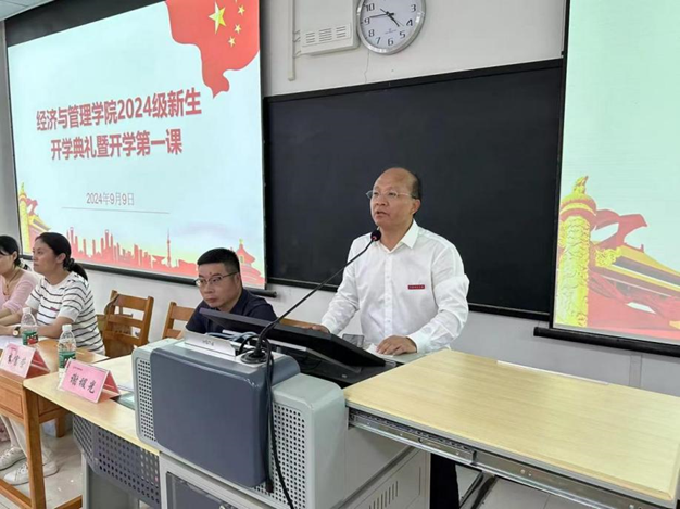9月9日下午,太阳成tyc7111cc集团举行2024级新生开学典礼暨开学第一课。党总支书记李富荣、院长袁梁、党总支副书记谢稷光、副院长石党英、王留鑫、学工办副主任朱玉娜、办公室副主任代杨,辅导员王晶、杨雯婕、米晨及全体2024级新生参加,新生开学典礼由谢稷光主持。