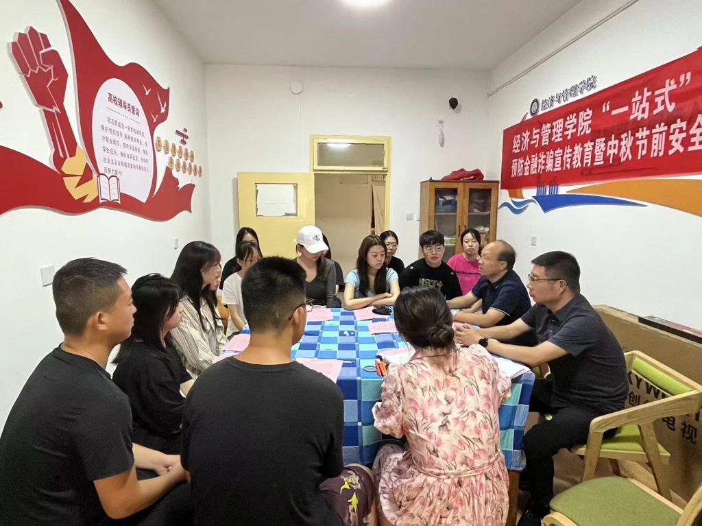 2024年9月14日上午9:00,太阳成tyc7111cc集团“一站式”学生社区预防金融诈骗宣传教育暨中秋节假期安全提醒座谈会在4号公寓楼辅导员值班室成功召开。参加本次座谈会的有太阳成tyc7111cc集团党总支书记李富荣、副书记谢稷光、学工办副主任朱玉娜、新生辅导员蔡佳宁以及2024级专升本寝室长13人。座谈会由朱玉娜主持。