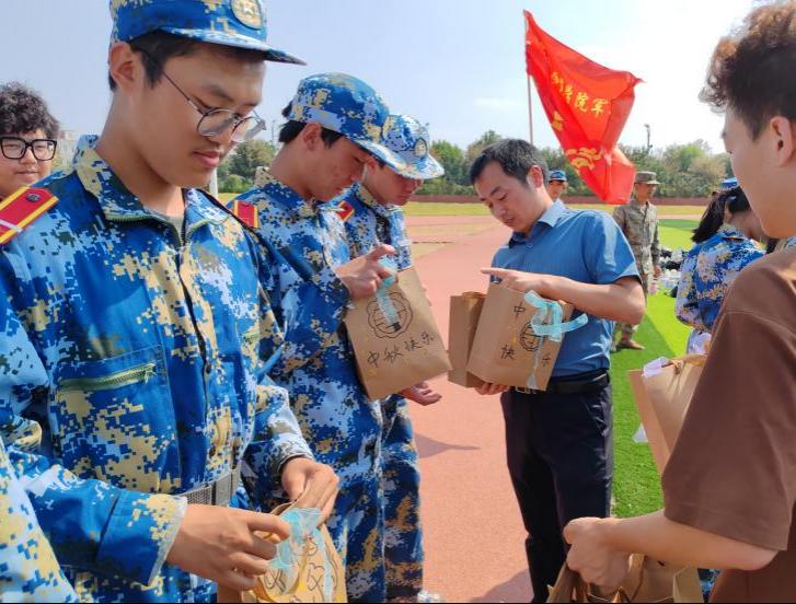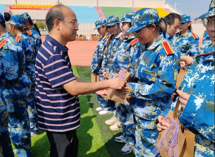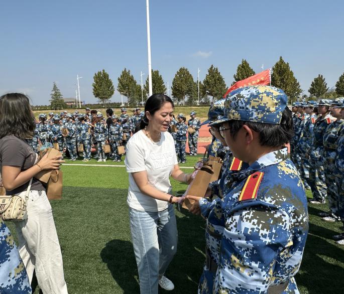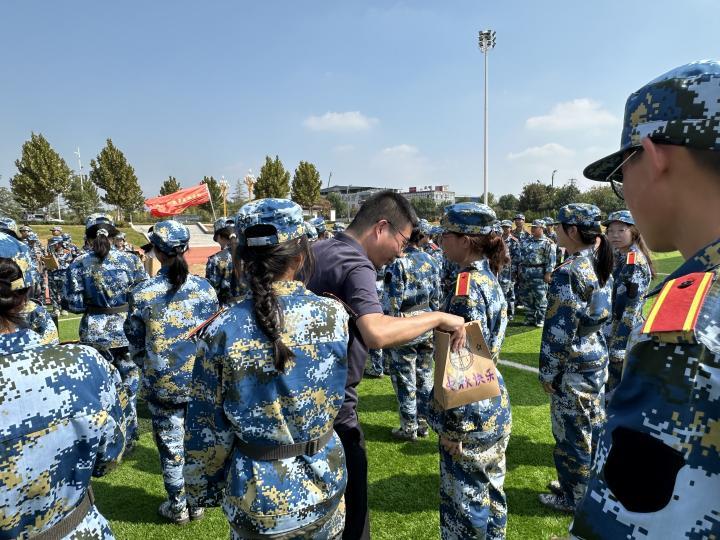 我院领导老师一同为军训的教官与新生分发小礼品。老师亲自分发礼品给学生,不仅是一种物质上的奖励,更是一种精神上的鼓舞。这种温馨的互动,让校园生活更加美好,也使得师生关系更加和谐融洽。