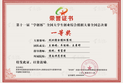 第十一届“学创杯”全国大学生创业综合模拟演训活动自2024年3月拉开帷幕,便吸引了全国超过1500所高校的热烈响应,参赛师生人数更是突破了30万大关。经过省赛、全国半决赛的层层选拔与激烈角逐,最终,高教组仅有172所高校、240支队伍成功晋级总决赛。在这场智慧与策略的巅峰对决中,我校经管学院的杰出代表——王丽娟、车佳瑶、王景舒三位同学,凭借他们深厚的专业知识底蕴、冷静的现场发挥以及默契的团队协作,最终问鼎全国总决赛一等奖,为学校赢得了无上的荣耀。