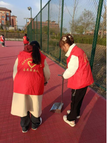在包联的卫生区,学生们分工明确,有的负责清扫地面上的落叶和垃圾,还有的负责清理篮球场周围的杂草和杂物。在教学楼,另一组同学仔细打扫教室,清理黑板,整理桌椅,确保教室环境的整洁和舒适。经过近两个小时的共同努力,使得教室和卫生区的环境焕然一新。