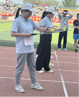 教职工运动会涵盖田赛、径赛及趣味项目。田赛中,背抛实心球比赛中,经管教职工奋力投掷,尽显力量与技巧;射箭团体赛上,老师们身姿挺拔,搭箭、开弓、瞄准、放箭一气呵成,团队挑战赛中队员默契配合,展现出高度协作精神。