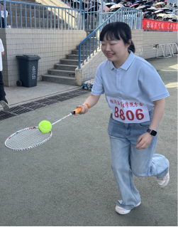 趣味项目中,拖球跑比赛人气高涨。选手需托球沿规定赛道前行,过程中球不掉落方可完赛。现场有人谨慎控拍稳步前进,有人失误后迅速调整重跑,技巧娴熟者率先冲线,在欢声笑语中,教职工既享受运动乐趣,也锻炼了协调能力。