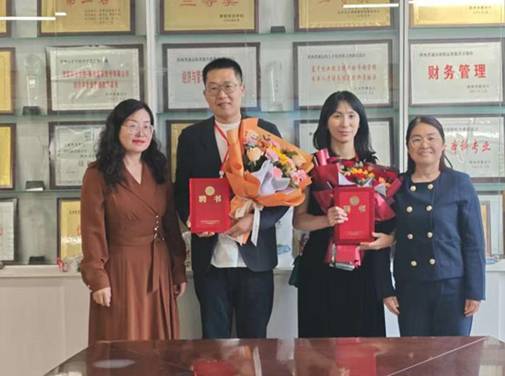 学院教学副院长石党英、肖颖为两位优秀校友颁发校外企业实践导师聘书,期望借助他们丰富的经验和广阔的视野,为学院的人才培养和学科建设注入新的活力。
