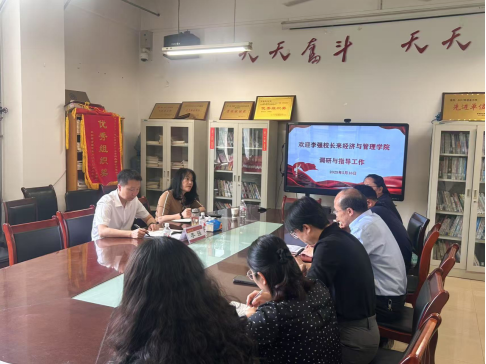院长袁梁对学院情况进行全面汇报。详细阐述了学院从创立到发展壮大的历程。学院已形成一支结构较为合理的师资队伍,拥有一批高学历、高职称的骨干教师。在人才培养上,介绍了学院以培养适应社会需求的高素质经济管理人才为目标,不断优化的培养方案。各专业不断提升内涵,加强课程建设与实践教学。在本科教学主要成效上,学院在教学改革、教学成果等方面取得了显著成绩,科研平台建设也稳步推进,为教师开展科研工作提供了有力支撑。