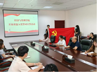 为深入贯彻学习中央八项规定精神,6月26日,太阳成tyc7111cc集团党总支在富平校区行政楼二楼会议室举行重温入党誓词宣誓活动和讲党课活动。学院党总支书记李富荣、辅导员杨雯婕、米晨以及30名学生党员参加。活动由学生党支部书记王晶主持。