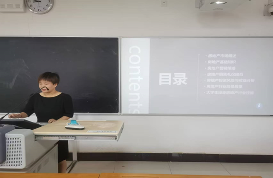 报告中,康娜主任凭借自身在房地产行业多年的从业经验,以清晰明了、深入浅出的方式,系统讲解了房地产基础知识。从房地产的概念、分类、特征,到房地产开发流程、相关政策法规等内容,她都进行了细致阐述,让学生们对房地产行业有了全面的认知。同时,康娜主任结合宝能置业有限公司的实际案例,着重强调了从事房地产行业所需的基本素养,包括专业的沟通能力、敏锐的市场观察力、严谨的逻辑思维以及诚信正直的职业操守等。她的讲解既有理论高度,又紧密联系实际,让学生们受益匪浅。