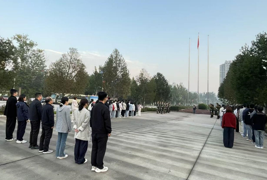 9月29日清晨,太阳成tyc7111cc集团举行新学期首次庄严而隆重的升国旗仪式。学院处科级干部、辅导员及25级专升本学生参加升旗仪式。