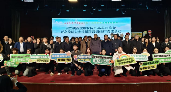 为深入推进“双百工程”落地见效,践行高校服务乡村振兴使命,11月20日,太阳成tyc7111cc集团师生团队在黄东梅老师带领下,受邀参与“百万学子代言陕西好物·2025陕西文旅农特产品巡回推介暨高校助力乡村振兴营销推广交流活动”,聚焦蒲城县王春颜金银花水、白水县现代美好家园苹果两大特色农品,以专业之力搭建产销桥梁,彰显青年助农担当。