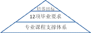 兰州理工大学依托理工科背景,在会计学专业人才培养方案修订上采用工科认证体系的做法,构建金字塔的培养体系,处于金字塔顶端是专业培养目标,第二层次的是将专业培养目标具体化到学生毕业时必须达到的12个毕业能力要求,处于第三层的将12个能力要求分解到到培养计划的每一门课程中去,每一门课程对学生能力的贡献程度赋予权重和分值,全部做到量化,最终考察每一门课程对培养目标的支撑度。如图1。