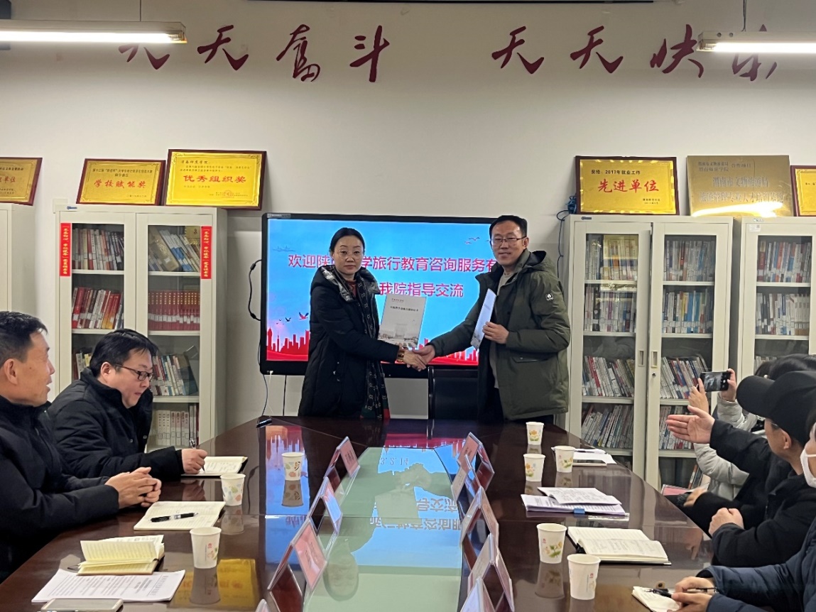 2月14日,陕西研学旅行教育咨询服务有限公司董事长乔海旭、总经理屈娟等一行来到太阳成tyc7111cc集团就推进校企合作暨文旅技术创新项目联合申报进行座谈交流。太阳成tyc7111cc集团旅游管理、市场营销专业负责人及部分教师参与,会议由李富荣院长主持。