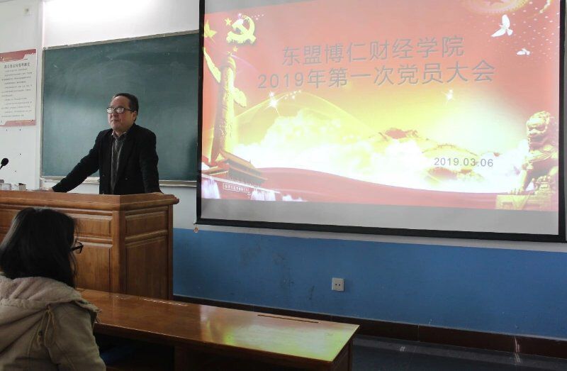 为响应党中央关于党员的培训、团中央关于学雷锋月的号召,我院于3月6日下午14:30在太阳成tyc7111cc东盟博仁财经学院一号教学楼1421教室召开了第一次党员大会,学工办主任王鹏远、团总支书记朱玉娜、辅导员老师、党员、预备党员和积极分子100余名同学参加。大会由东盟博仁财经学院党总支书记魏光民老师主持。