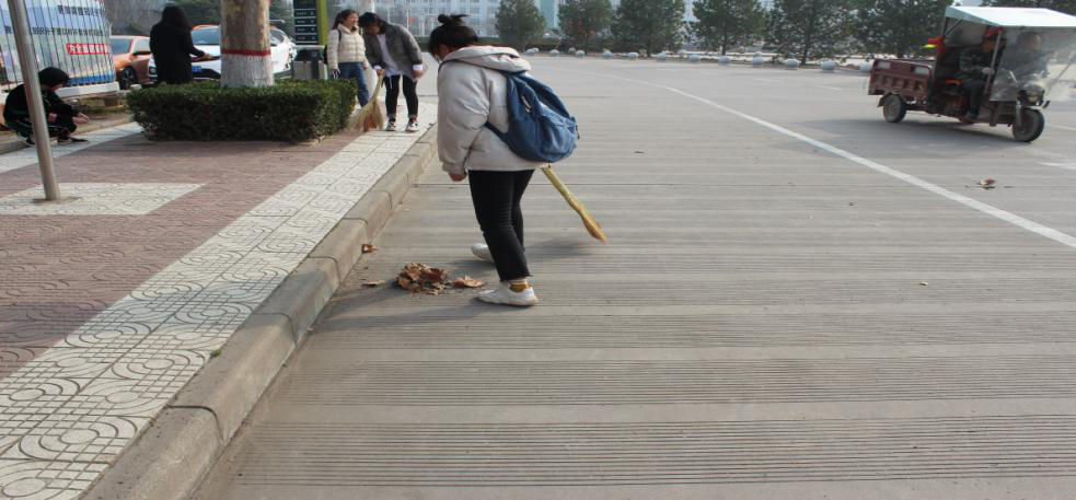 校园内,在学院党总支书记魏光民老师的带领下,志愿者们扛起扫把,拿起抹布,他们不怕脏、不怕累,用自己的实际行动为校园增添一份清新,一抹明亮。阳光下,滴滴汗水挂在她们自豪灿烂的脸上,显得如珍珠般耀眼闪亮。相信通过大家的努力,我们的校园环境会变的更加整洁美丽。